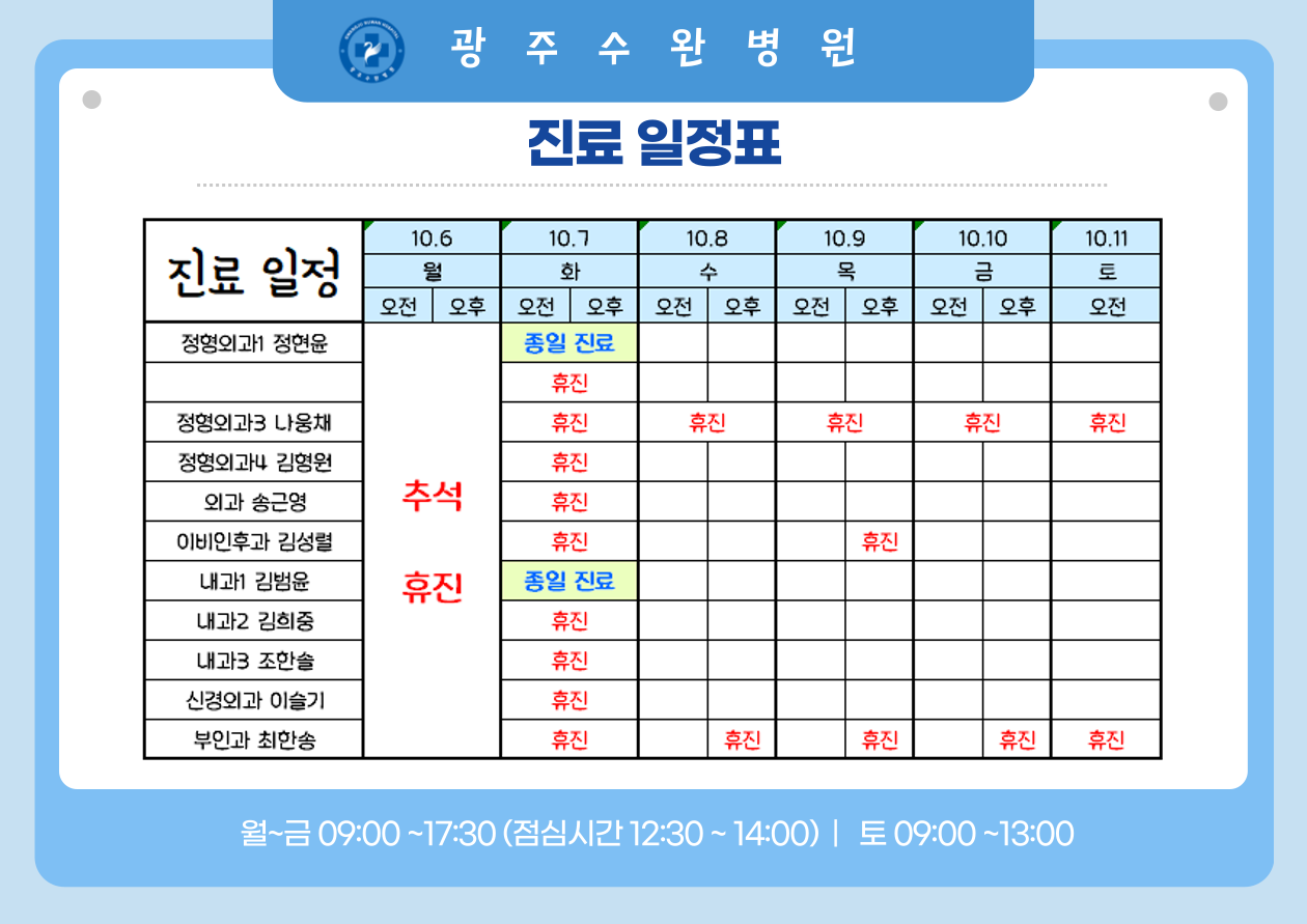 10.6 일 추석연휴로 인한 전체 휴진입니다.