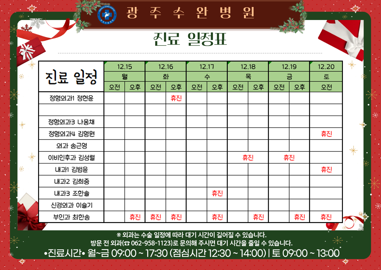 ★12월 셋째주 휴진알림★