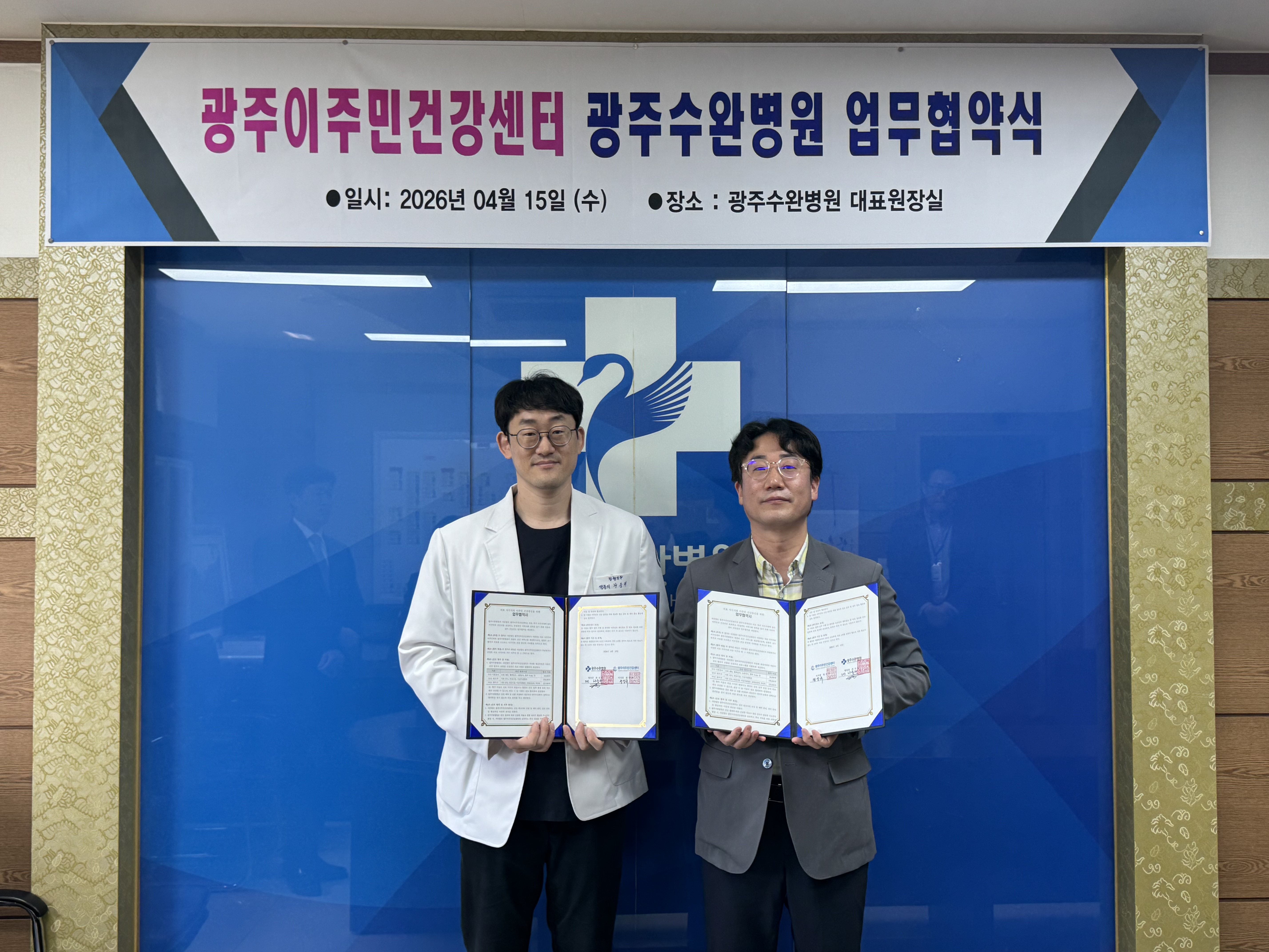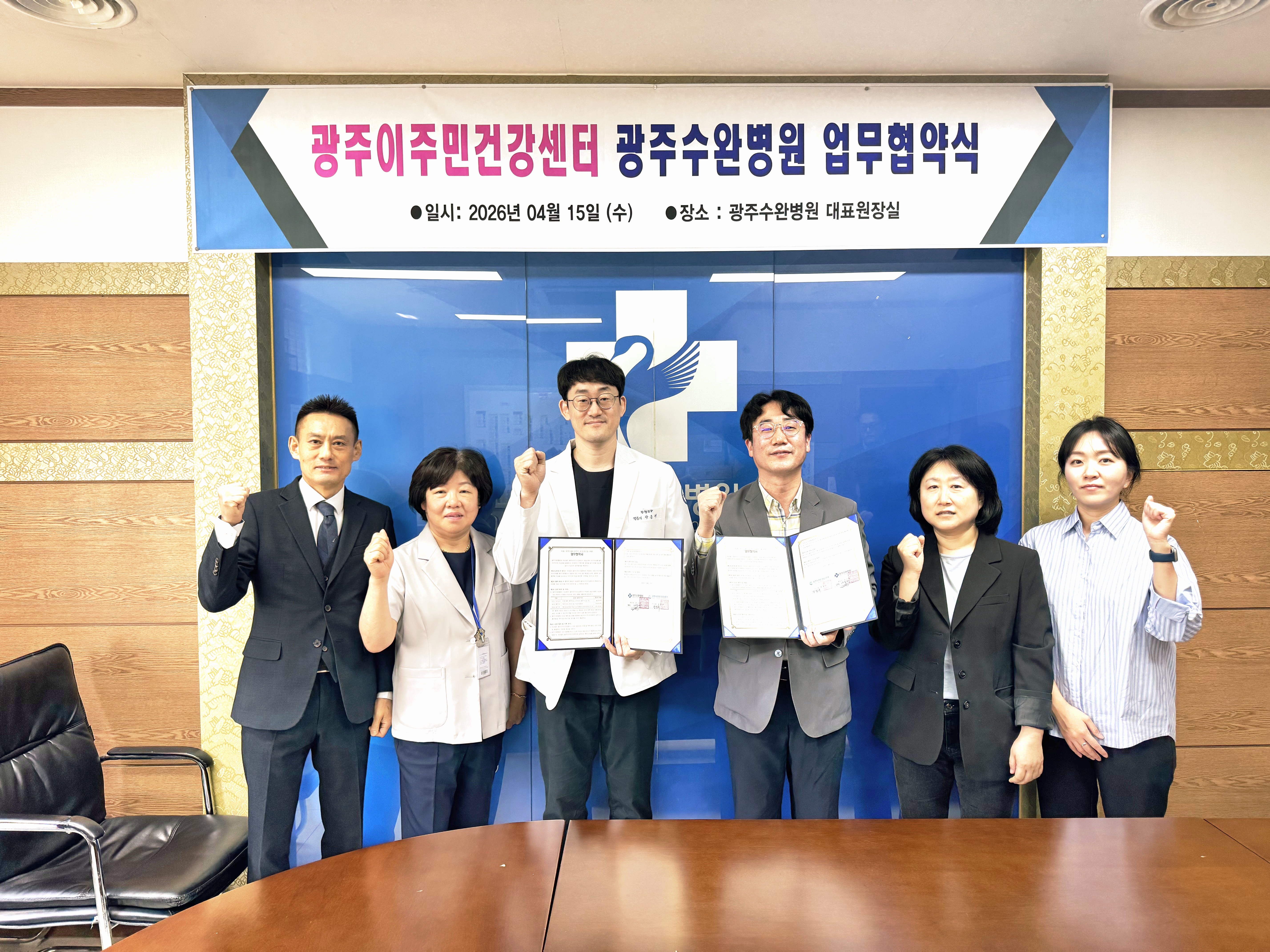 광주수완병원과 광주이주민건강센터 간의 협약식이 성공적으로 진행되었습니다.